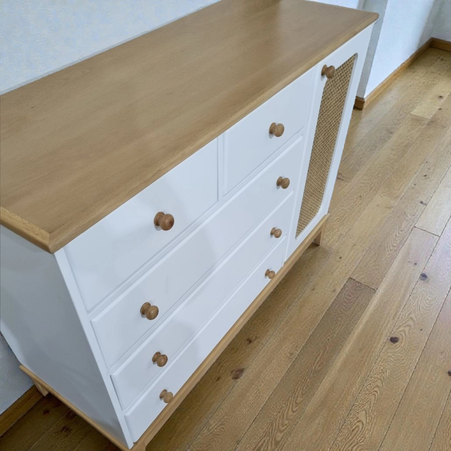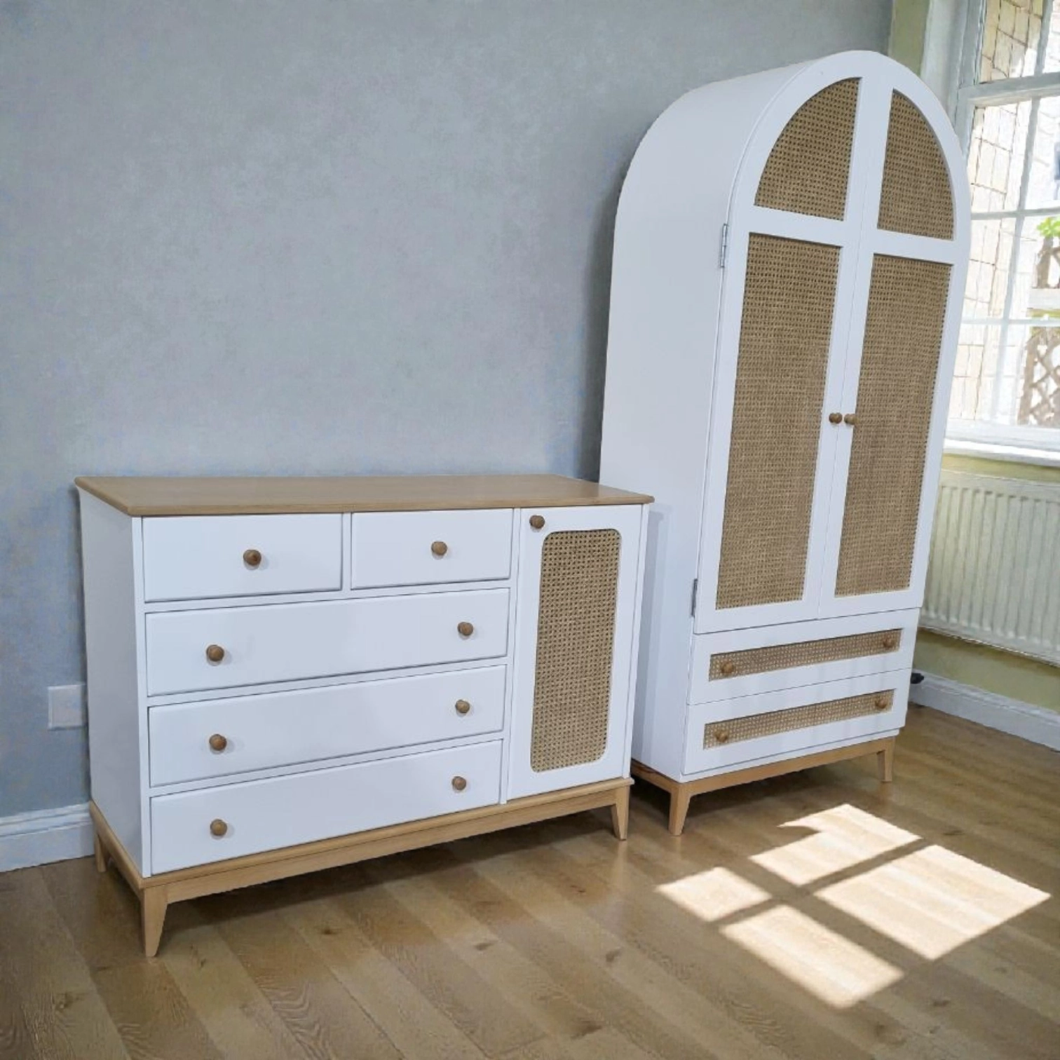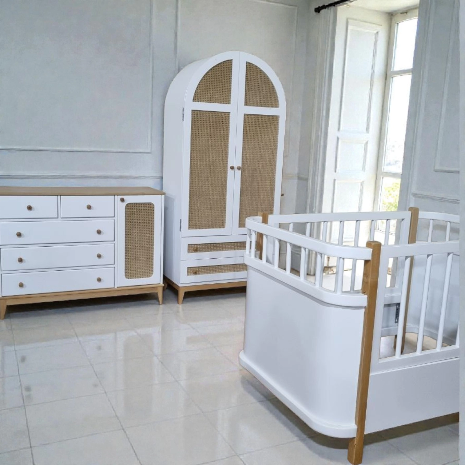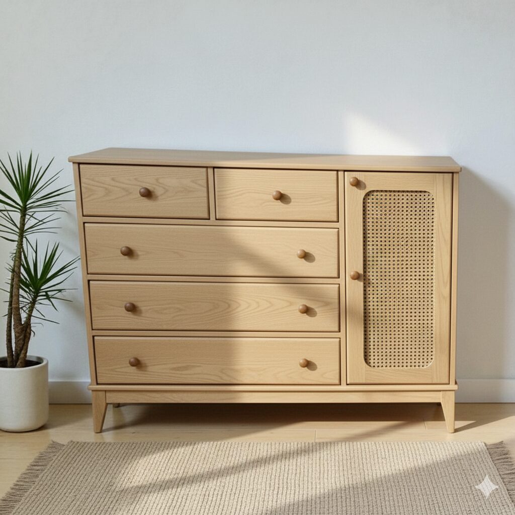 دراور مدل D4 با ترکیب زیبای چوب و حصیر، پاسخی کامل به نیازهای ذخیرهسازی در اتاق کودک شماست. این دراور نه تنها فضای فراوانی برای نگهداری لباس و وسایل فراهم میکند، بلکه با طراحی منحصربهفرد خود، جلوهای گرم و شیک به دکوراسیون میبخشد.
