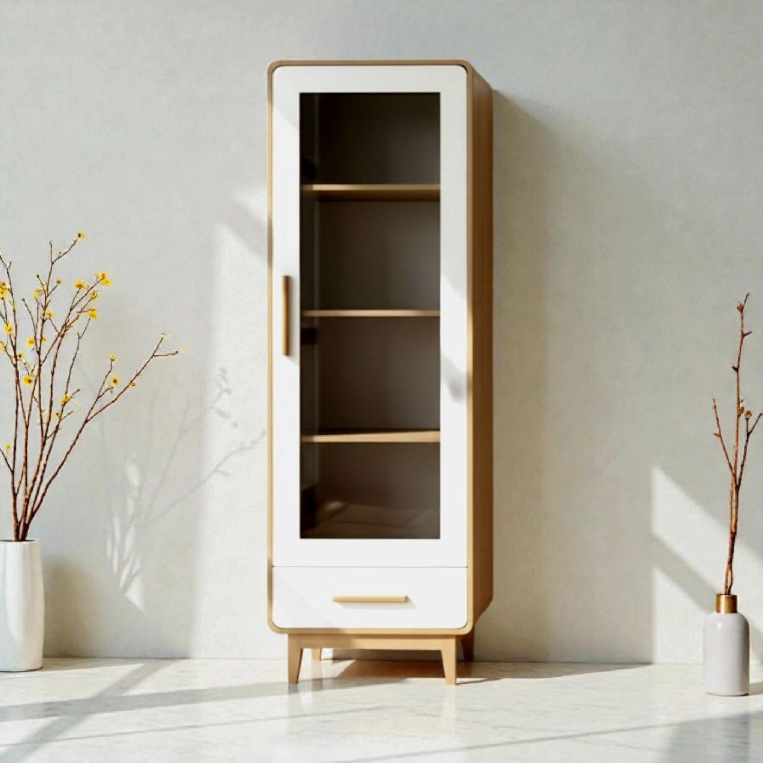 • درب شیشه‌ای و ۳ طبقه نمایش: قسمت اصلی ویترین دارای یک درب شیشه‌ای و سه طبقه داخلی است. این بخش برای نمایش کتاب‌ها، جوایز یا اسباب‌بازی‌های زیبا و دکوراتیو ایده‌آل است.